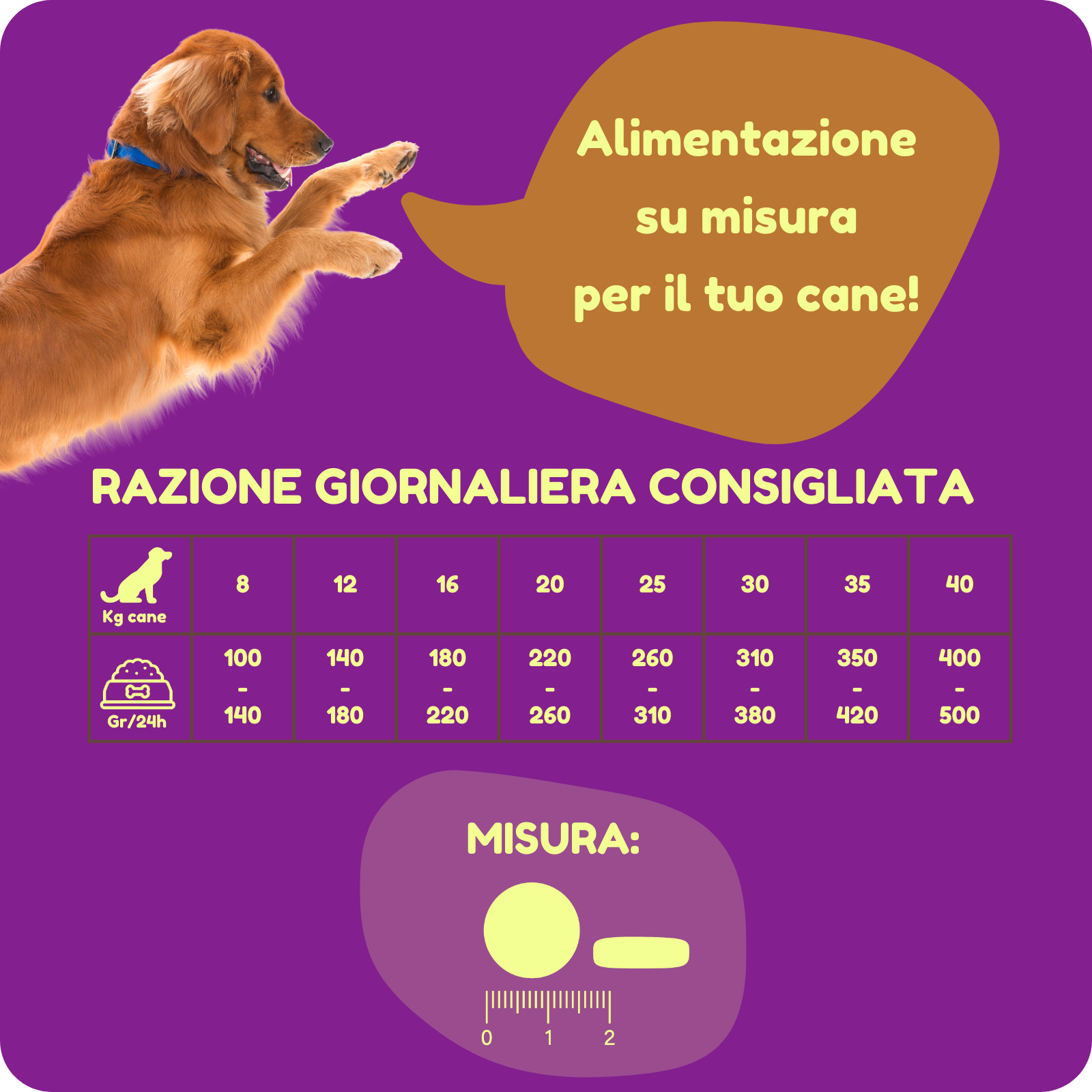 Proteina grezza 28%, Grassi grezzi 19%, Ceneri grezze 7%, Fibra grezza 2,6%