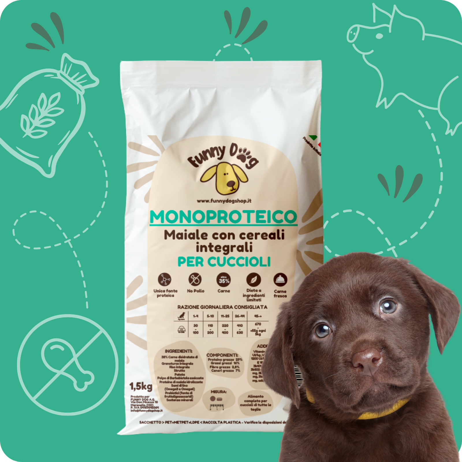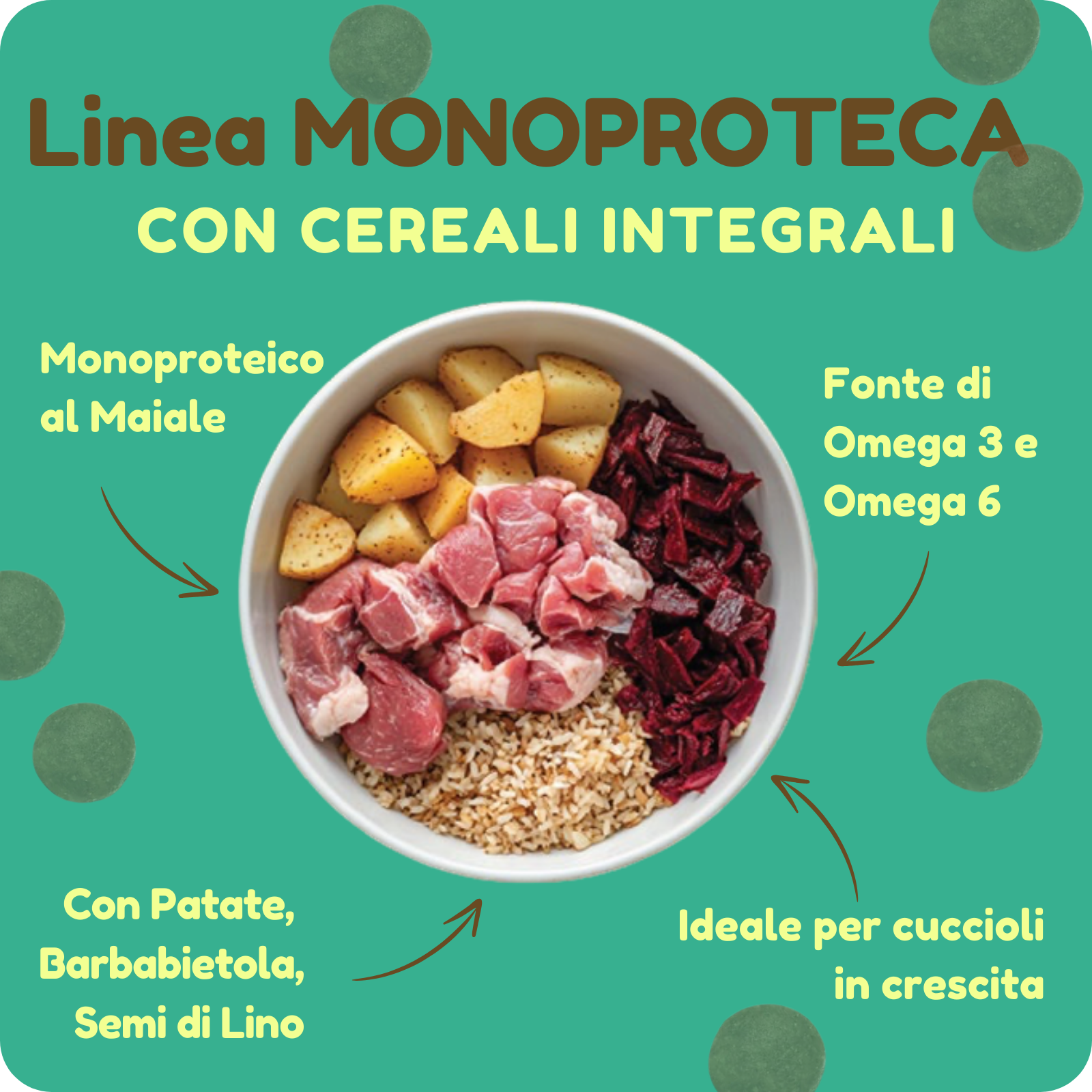 Crocchette MONOPROTEICHE con Maiale e Cereali Integrali per CUCCIOLI