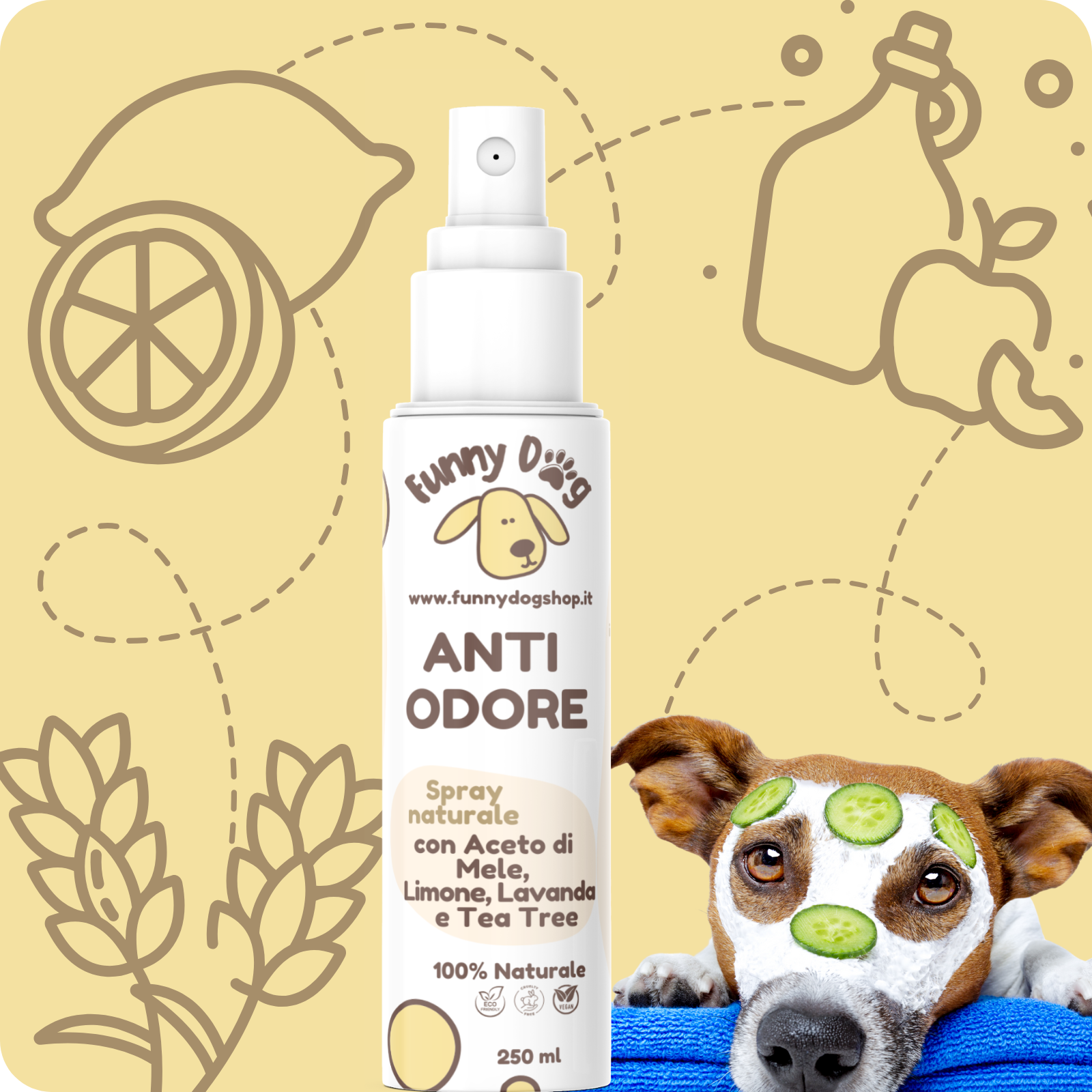 Spray ANTI ODORE con Aceto di Mele, Limone, Lavanda e Tea Tree da 250 ml